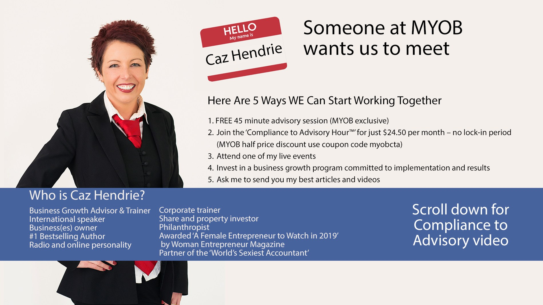 myob Caren Hendrie & Michael Moschetti ‘The 4 Steps from Compliance to Advisory’ Melbourne Convention Exhibition Centre MYOB Partner Connect Caren Hendrie & Michael Moschetti, The Hendrie Group – From compliance to advisory in 4 steps